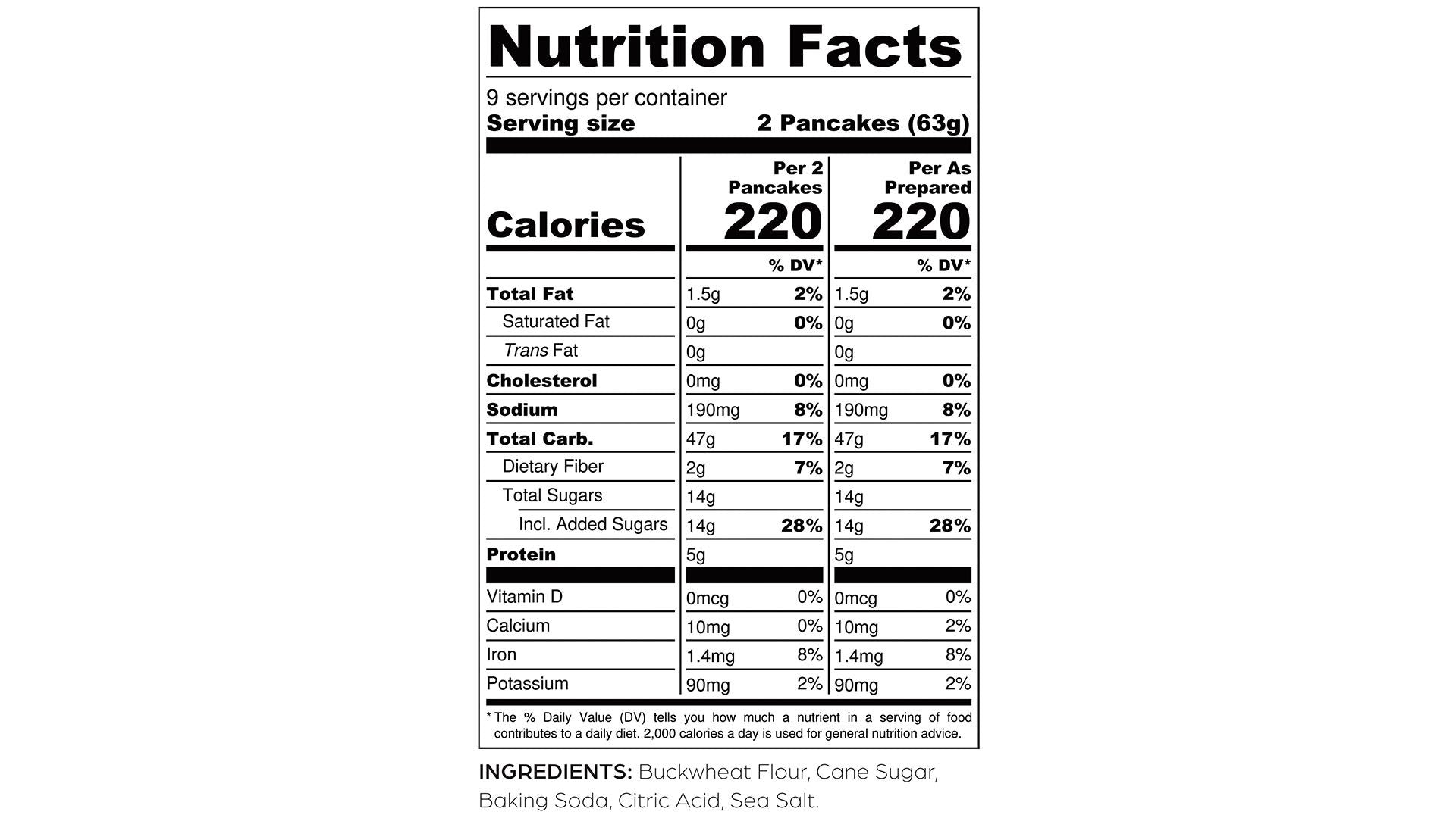 Buckwheat Flour, Cane Sugar, Baking Soda, Citric Acid, Sea Salt
