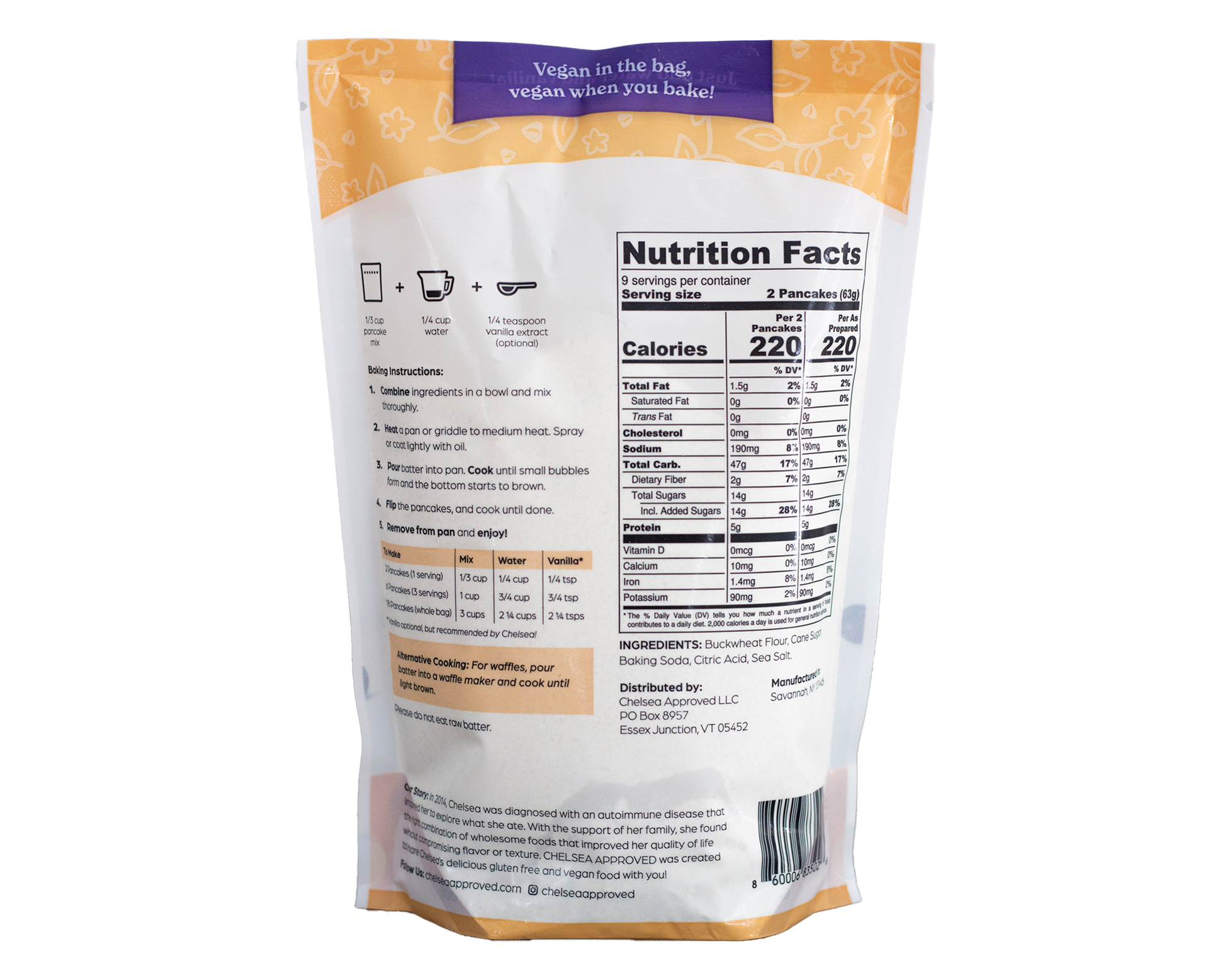 Make amazing pancakes or waffles anytime of day! Our pancake and waffle mix is vegan and gluten free, contains simple ingredients, and is easy to mix, make, and bake! Whether you prefer to use as a pancake mix or a waffle mix, or both, either option pairs incredibly well with your favorite toppings, plus you can make them in any size you prefer!